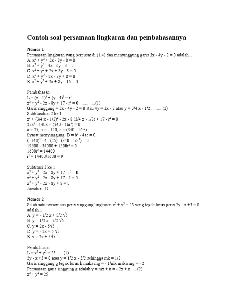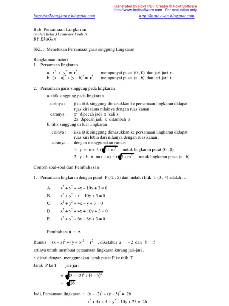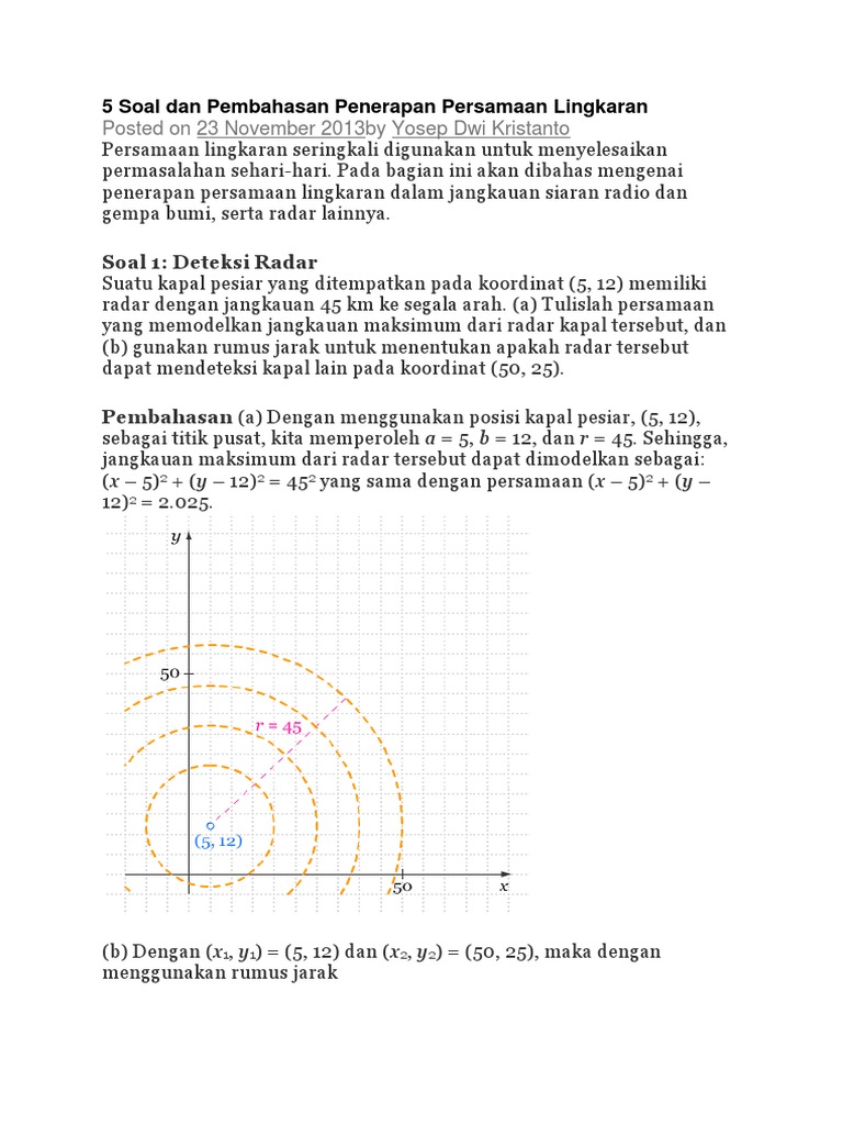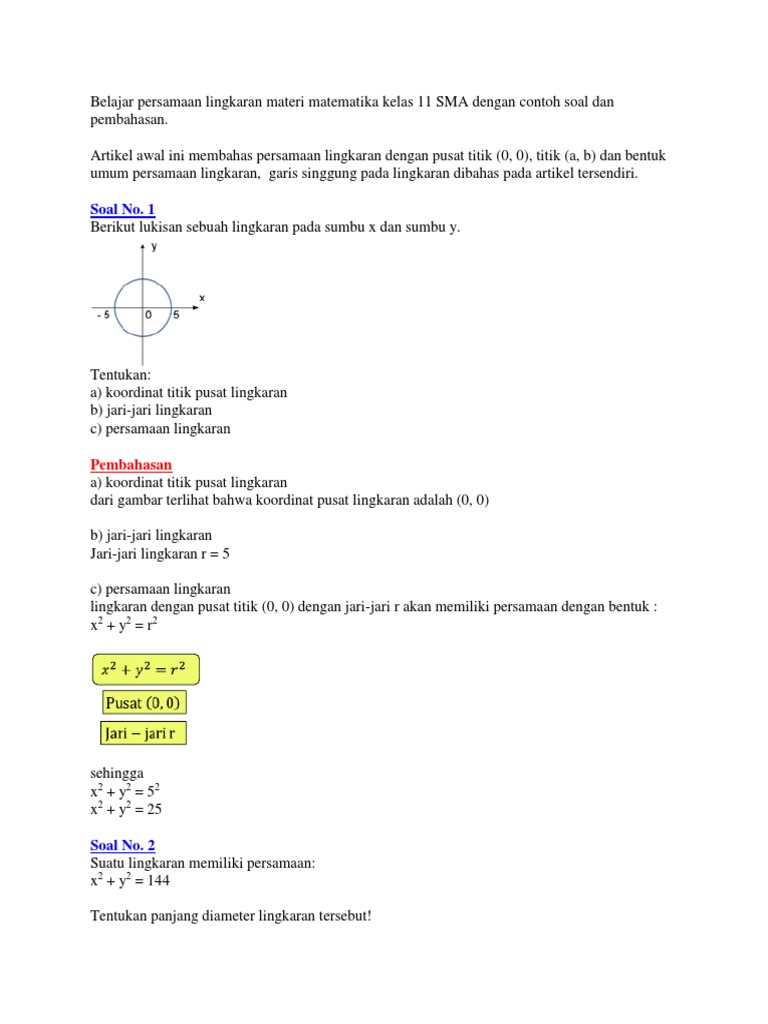 Contoh Soal Rumus Persamaan Lingkaran Pengertian Umum Pusat O T M Jari Jari R Posisi Titik Dan Garis Pembahasan Jawaban Matematika